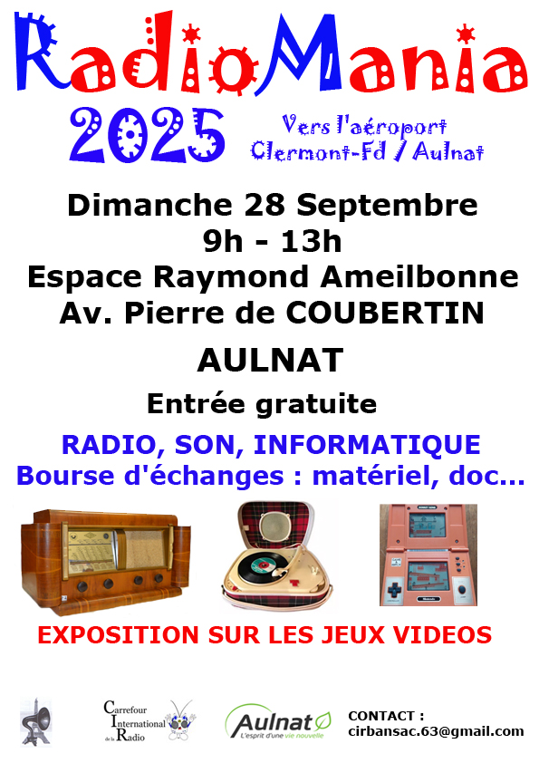 ORGANISATION : le Carrefour International de la Radio (CIR) et RADIOFIL. Evènement auquel participe le RADIO DX Club d'Auvergne et Francophonie.